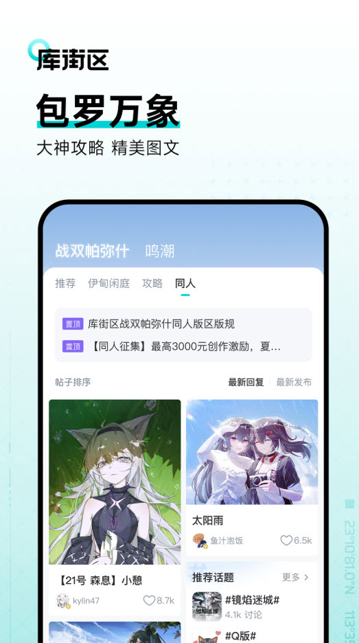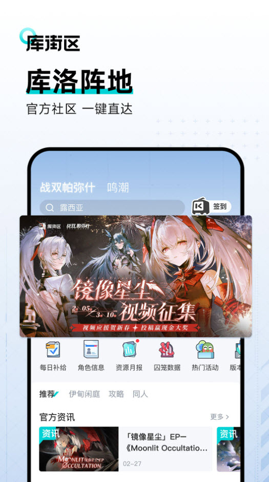 库洛区app官方版下载2026是专为鸣潮、站双帕米尔等库洛游戏打造的官方游戏社区,用户可以在软件查看最新游戏攻略、领取最新游戏礼包、参与社区交流等,还有丰富、免费的游戏小工具可以免费使用。库洛区app手机安卓版下载绑定自己的游戏角色后,不用登录游戏就可以查看角色信息,随时掌握游戏进度和角色状态。