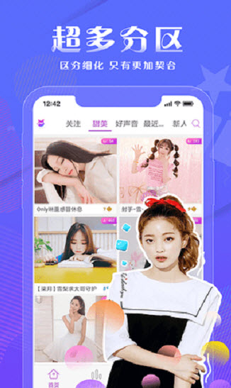 3. 【特色介绍】汇聚各型各款颜艺俱佳的主播,风格独特、内容新颖,带你领略不同于YY、花椒、ME等平台的别样直播精彩;
