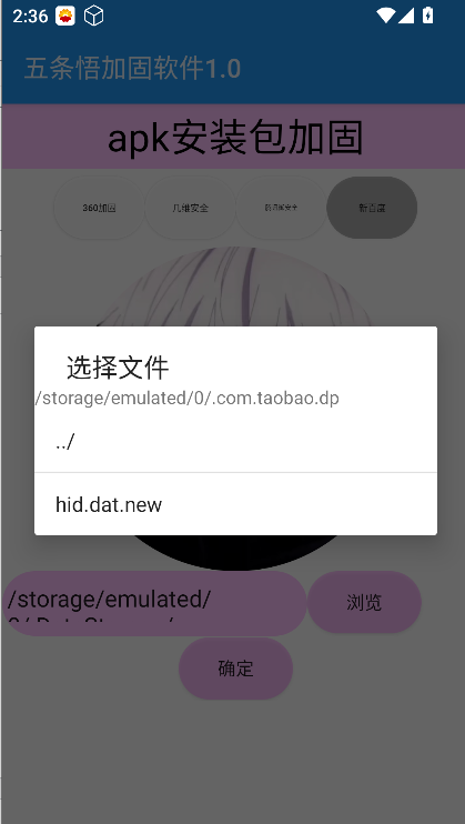 打开五条悟加固软件后,点击 “浏览” 按钮,从本地文件中选择需要进行加固的 APK 文件。