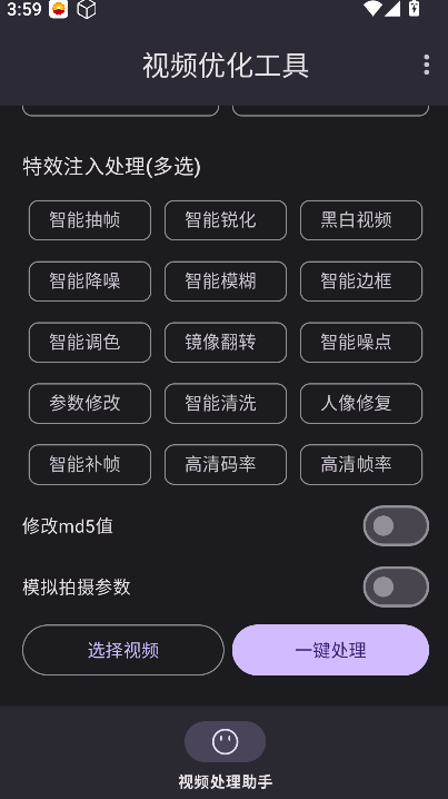 确认视频与功能选择无误后,点击 “一键处理” 按钮,等待软件完成处理即可。