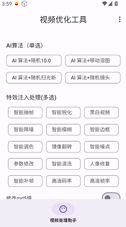 视频优化工具 app 主打 “一键优化视频画质” 核心功能,搭配灵活的多帧率选择,可适配不同场景下的用户使用需求。通过专业的画质提升技术,它能将原始视频质量优化至 4K 高分辨率,确保画面中每一处细节都清晰可辨,彻底告别视频画质模糊的困扰。更值得一提的是,软件内所有功能均免费开放,无需付费即可享受专业级的视频优化体验。