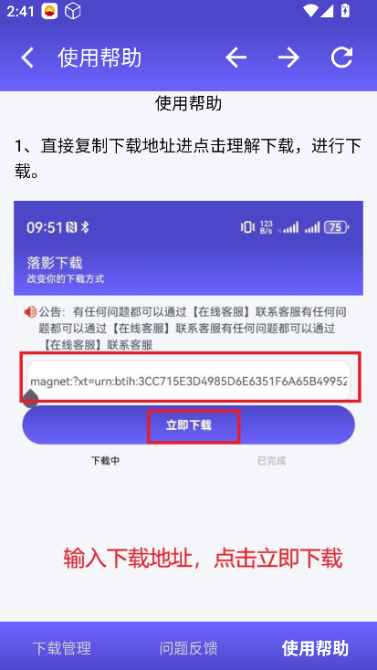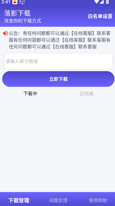 落影app下载无广告是一款专注于磁力资源获取的专业工具,不仅能实现高速下载,还能对已下载资源进行便捷管理。落影下载免费官方版无论你是想获取影视、音乐还是文档资源,它都能快速响应需求,同时支持自定义服务设置,让你可以根据自身使用习惯调整,多任务并行下载功能更能大幅提升资源获取效率。采用专门的资源保护机制,确保下载后的资源不会出现损坏或丢失问题,同时优化缓存加载速度,带来更流畅的使用感受,深受用户喜爱。有喜爱的赶快的来下载体验吧!