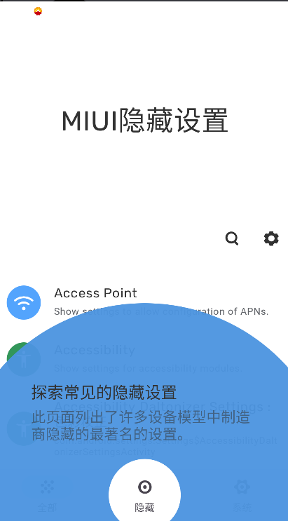 hidden settings中文安卓版是一款主打 “挖掘手机隐藏功能” 的实用启动器软件。hidden settings下载最新版本不仅功能全面,还贴心支持中文显示,能帮你更清晰地了解手机深层设置;一旦完成手机 root 操作,软件会自动加载防火墙等安全工具,而且整体操作特别简单,直接搜索就能找到那些藏在系统里的设置项。内置了详细的操作教程和常见问题解答,遇到使用难题时,直接查指南就能快速解决,不用到处找帮助。