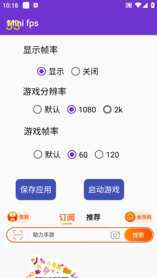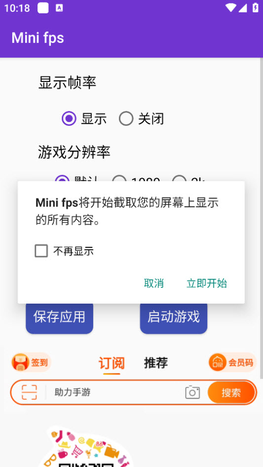 打开软件后,可直接进行功能设置并立即使用,使用前需为 minifps 帧率显示器授予相应的系统权限,确保功能正常运行;