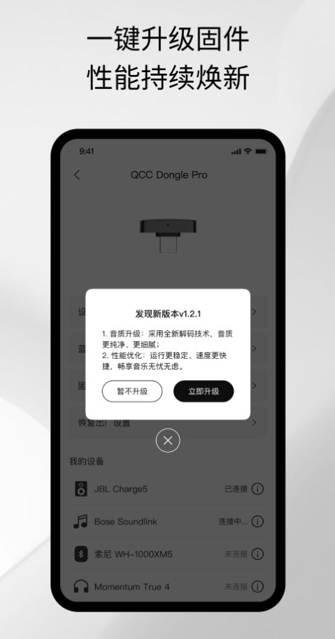 以往繁琐的固件升级,现在在 app 的设备管理页面就能轻松解决。在这里,用户可以为设备获取最新固件版本,修复潜在的小漏洞,优化设备性能,让设备始终保持良好的工作状态,发挥最佳音频效果。