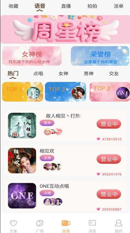 3、主播类型丰富多样,清纯萌妹、温柔淑女带来治愈互动,说唱达人、直播 DJ 点燃气氛,不管你喜欢哪种风格,都能找到心仪的主播陪伴你;