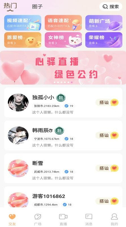 4、在线视频互动,轻松发现同样期待邂逅的 TA!在茫茫人海中找到兴趣相投的朋友,让附近交友变得简单,轻松拓展社交圈;