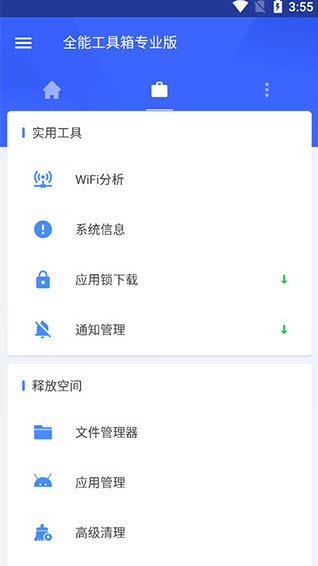 实用工具:WiFi 分析(检测 WiFi 信号强度、连接设备)、系统信息(查看设备详情)、应用锁下载(获取应用加密工具)、通知管理(管理应用推送通知)