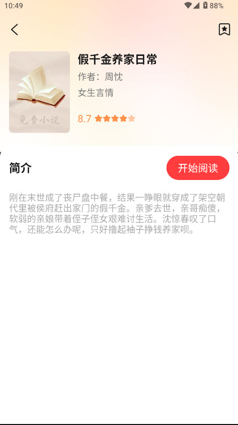 在感兴趣的小说详情页中,点击 “开始阅读” 按钮,即可进入阅读界面;