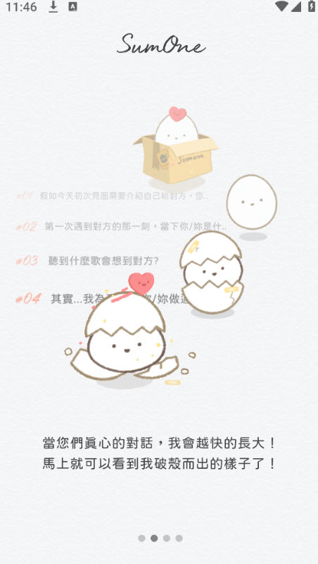 sumone 是一款设计软萌可爱的情侣问答日记软件,采用 “一天一个问题” 的独特模式,通过双方共同回答问题,探究彼此内心想法、记录爱情成长轨迹,让伴侣更清晰地了解你的真实感受,加深情感共鸣。