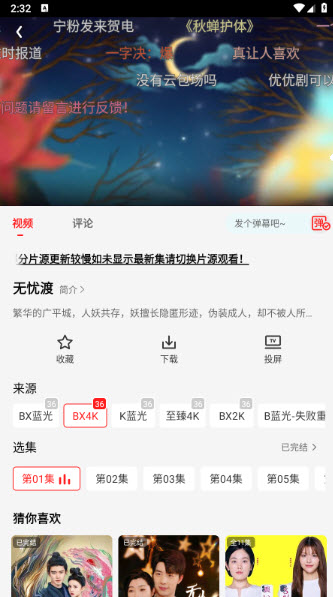 高清画质:提供标清、高清、超清等多种清晰度选择,不管是追求画质细节的用户,还是想节省流量的用户,都能获得合适的观影体验。
