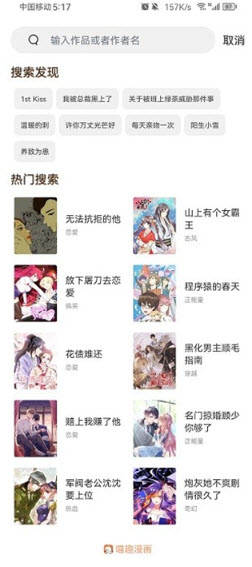 6、若未找到目标漫画,可在页面头部的搜索框中,输入作品名称或作者名字,直接精准搜索;