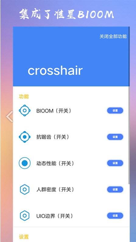 2、在功能设置板块,用户可根据自身需求自定义调整 bloom(光晕)、抗齿距、动态性能、准星稳定等关键数据,精准匹配个人游戏习惯;