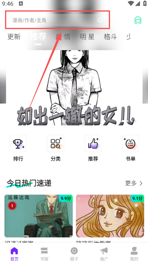 1、在首页浏览漫画,或者通过搜索功能找到想要评价的漫画作品,点击进入该漫画的详情页面