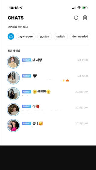 初始界面了解:登录后,首页会显示可购买聊天室的艺人列表。需要注意的是,列表中的艺人名称可能是偶像自定义的昵称,而非官方艺名,若遇到不熟悉的名称无需困惑,可通过头像确认艺人身份;未购买聊天室前,仅能查看艺人的头像、名称及个性签名(若艺人已设置)。