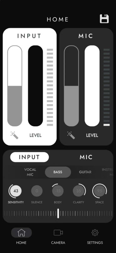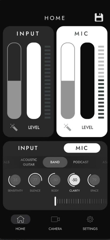 2. 核心功能入口:首页聚合电平实时监测面板、音频输入设置及麦克风参数调节功能,直观展示当前设备状态与音频信号情况,方便快速操作。