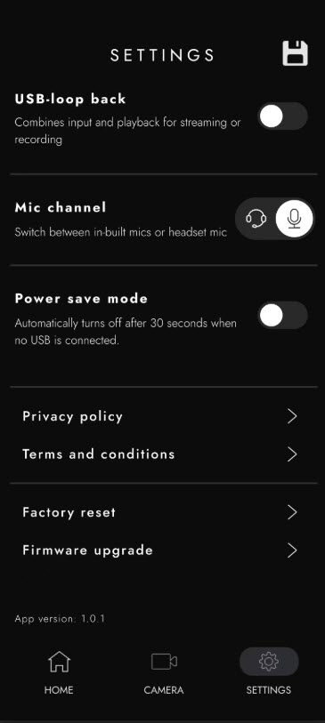 4. 专业参数配置:通过首页“设置”按钮,可开启多轨录音模式、配置USB环回功能,同时支持自定义音频采样率、输出格式等专业参数。