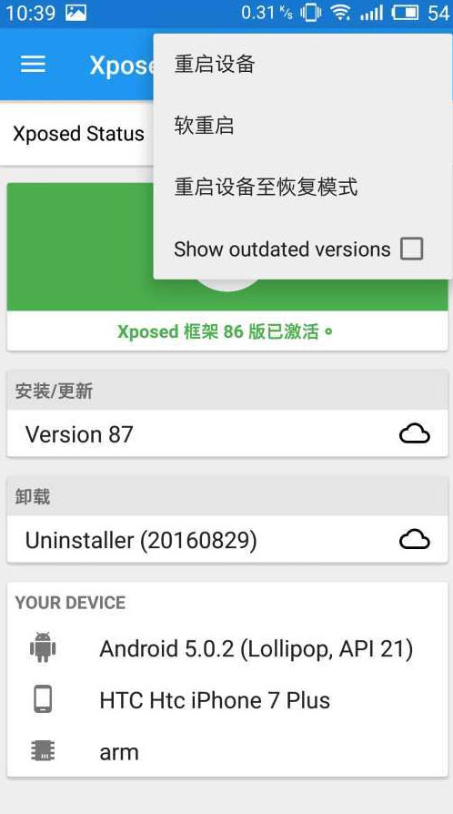 1、下载并安装Xposed框架客户端,首次启动完成初始化配置;
