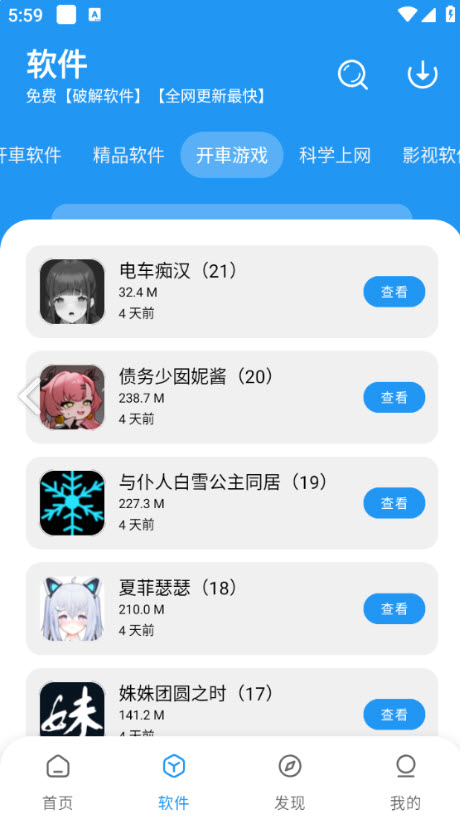 3. 通过底部导航栏“软件”模块,进入资源浏览页面,可按分类导航或热门推荐筛选内容;