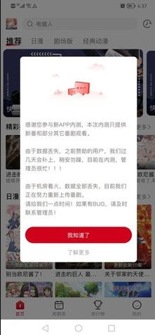 1. 内容查找便捷高效,在主界面可直接浏览个性化推荐内容,也能通过顶部搜索框精准查找特定作品,借助分类标签(如热血、治愈、科幻等)可快速筛选目标内容类型。