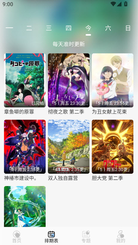 3. 进入「排期表」界面,可实时查看当日及未来数日的番剧更新计划,包含更新时间、剧集信息等细节,方便用户提前规划追番日程。