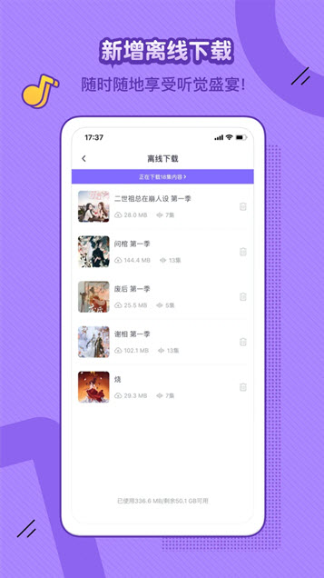 所有广播剧均采用高清音质制作,还原声音细节,让用户仿佛置身剧情现场。针对不同使用场景,平台搭载多项实用功能:离线下载支持批量缓存剧集,无网络环境也能畅听;倍速调节、跳过头尾功能满足高效收听需求;定时关闭(睡眠模式)避免熬夜收听,呵护听力;更支持一键设置追剧提醒,防止错过更新。此外,用户还能分享个人原创作品,在社区中结识同好,拓展兴趣圈层。