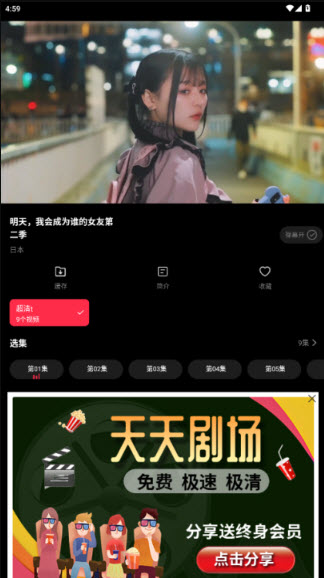 1、 打开已安装的天天剧场追剧app,在首页或分类栏中找到自己想看的剧集并点击进入播放页面;