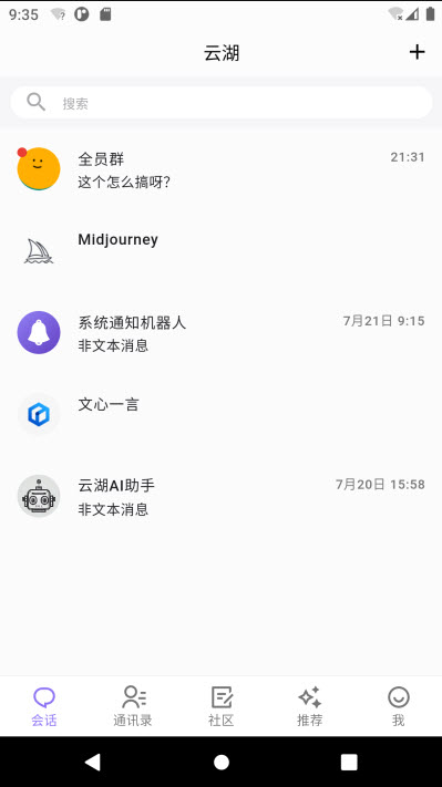 【丰富的机器人】内置官方机器人、服务监控机器人、RSS订阅机器人等实用工具。依托开放的服务接口,用户可自主打造专属个性化机器人,助力提升日常办事与工作沟通效率。云湖社交官方版下载app