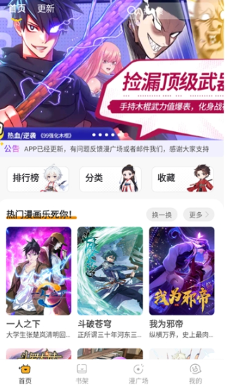 1. 首页便捷阅读:打开软件后,首页会直接推送当下热门漫画,无需多余操作,点击漫画封面就能直接进入阅读界面,快速开启追漫。