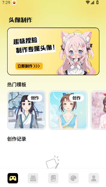 1、操作流程极简,用户进入软件首页即可启动趣味头像制作功能,系统提供丰富热门模板库与创作记录云存储服务,方便用户随时调取与修改。