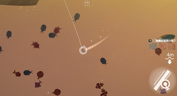 3、首次尝试抛竿时,垂钓深度设定为 2 米,很快就有鱼儿咬钩,成功钓起第一条鱼,体验初次垂钓的喜悦。