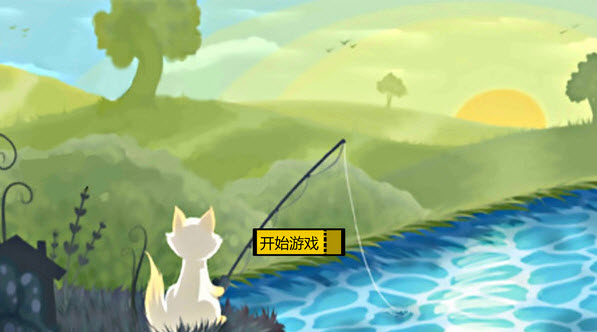 1、进入游戏界面后,一只憨态可掬的猫咪正守候在钓点旁,点击屏幕上的 “开始游戏” 按钮,即可开启垂钓之旅。