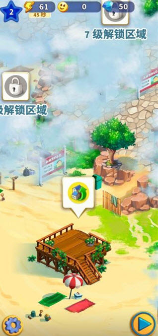 2、快速规划沙滩区域,解锁合成消除双重体验,逐步扩大小镇版图范围。