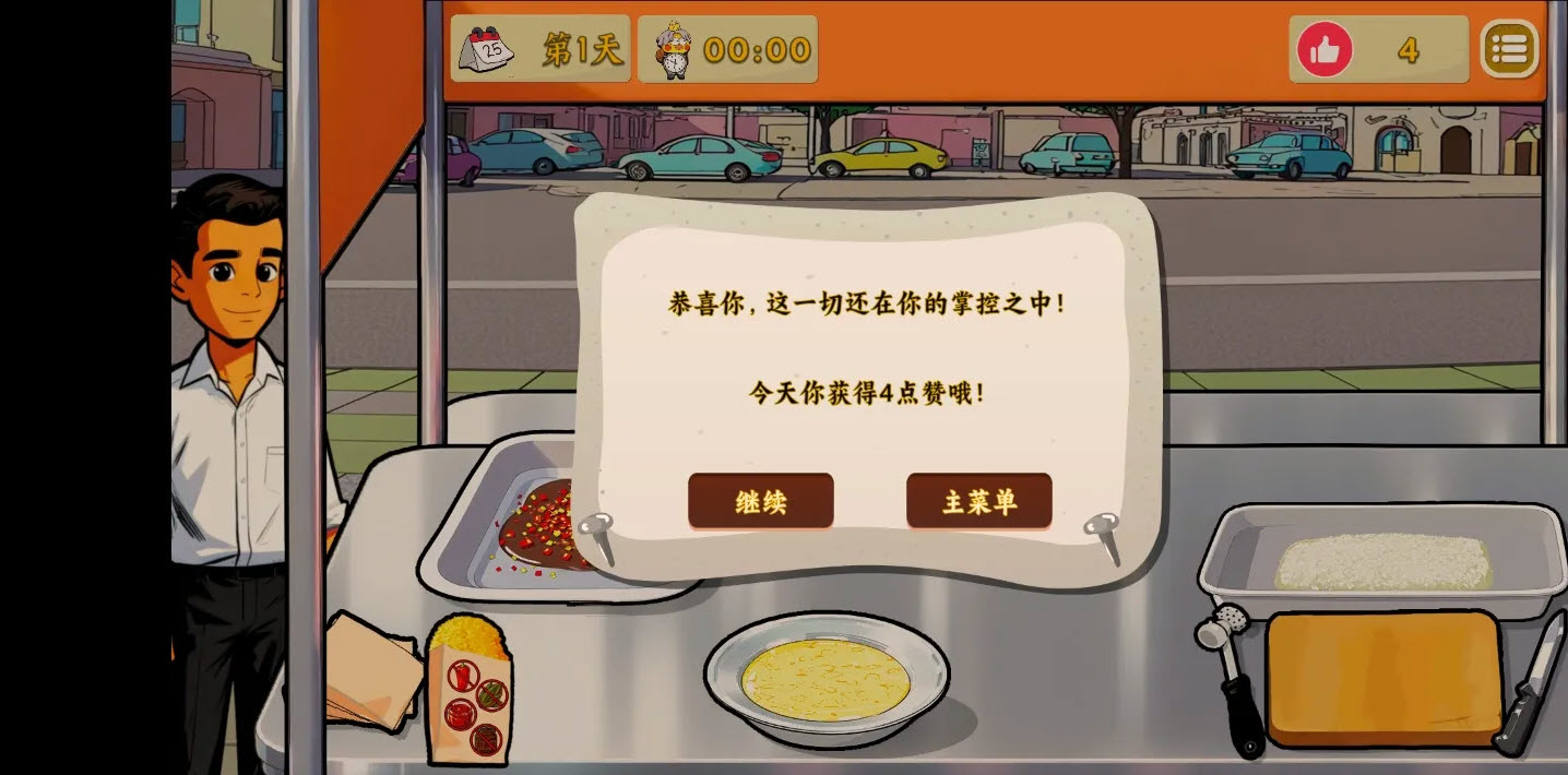 4、每日挑战任务福利拉满,完成即可解锁限定皮肤,黄金鸡排铠甲、史诗级外卖头盔等个性装扮,打造专属潮流摊主形象。