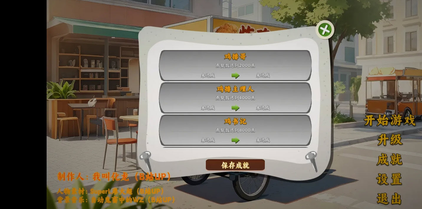 鸡排哥沙威玛传奇手游安卓正版下载是 B 站人气 UP 主我叫化龙倾力原创的一款无厘头美食动作模拟神作!玩家将化身街头最靓的鸡排摊主,白昼间沉浸式解锁爆汁鸡排的终极奥义 —— 精准裹粉、黄金炸制、光速装袋收银,在魔性循环的出餐节奏中玩转烟火气;鸡排哥沙威玛传奇手游最新下载手机版当夜幕降临,画风突变,手持巨型鸡排斩或塑料袋神装,直面从神话缝隙中钻出的奇葩妖怪:暴饮暴食的饕餮外卖员、炸锅成精的九尾油锅怪,开启热血战斗模式!游戏突破性融合经营养成与动作战斗,以夸张到极致的画风、魔性洗脑的音效、反转不断的剧情密集输出笑点,在荒诞叙事中点燃打工人的逆袭热血与奇幻想象。