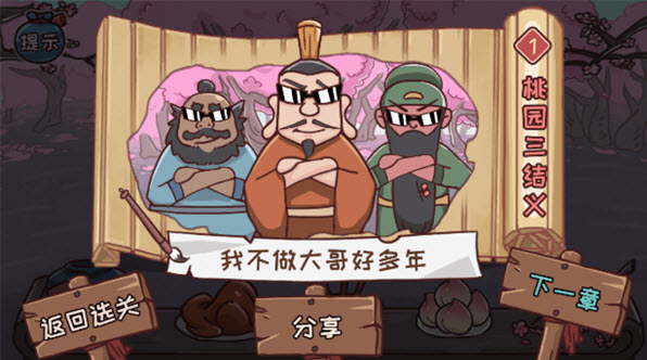 1. 开局就遇名场面反转:桃园结义现场,刘备愁得直转圈——说好的桃树全不见了!满屏道具任你造,是时候发动你的“搞笑脑回路”帮他破局。