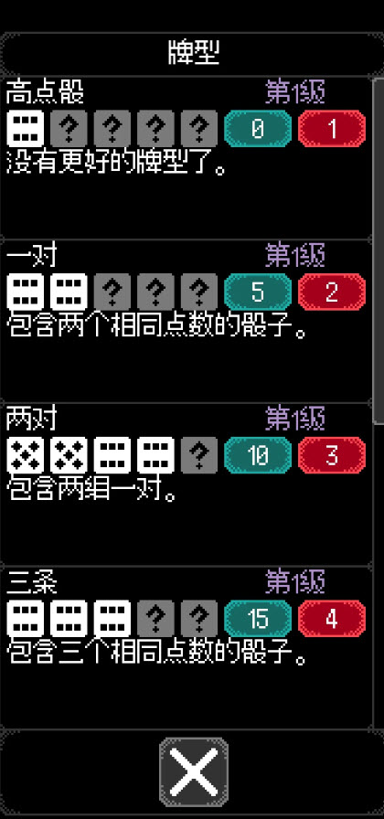1、骰子操作核心:每回合将自动掷出固定数量的骰子,玩家可根据需求选择保留部分骰子或重掷剩余骰子,最多拥有三次重掷机会,需合理规划以凑出理想点数组合。