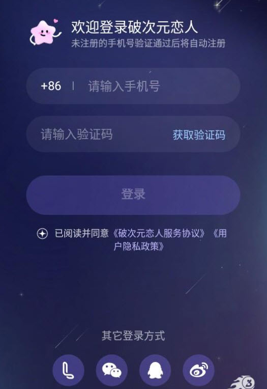 2. 完成协议确认后,通过手机号或第三方账号完成注册登录,建立你的专属游戏身份;