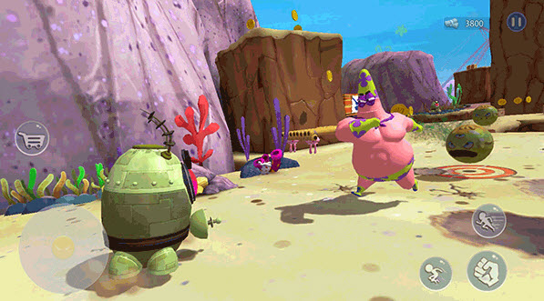 3. 战斗中可灵活搭配角色技能,比如用珊迪的喷气背包快速突袭,借助派大星的力量破坏重型机械,用策略击溃痞老板的机器人大军。