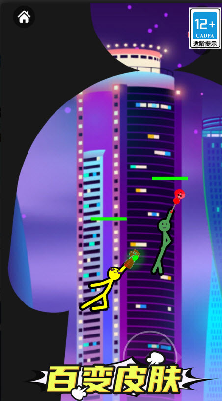 1、进入游戏即刻开启随机挑战,调整状态,准备操控火柴人投身激烈对战;