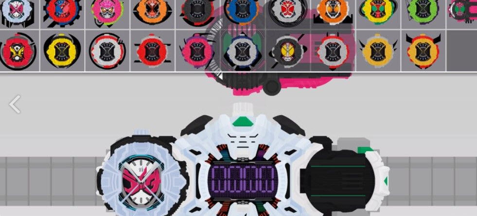 1、进入模拟器后,核心装置——银白色时空驱动器将位于界面中央,其上方两侧则陈列着各类驾驭表头。时空驱动器的左右插槽均可嵌入表头,首先请点击左上方的白色Zi-O(时王)专属驾驭表头。
