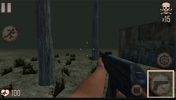4. 进入战场后,可先锁定左侧落单的丧尸作为“练手目标”,瞄准目标后点击右下角的射击按钮即可发起攻击,熟悉枪械的射速与弹道。