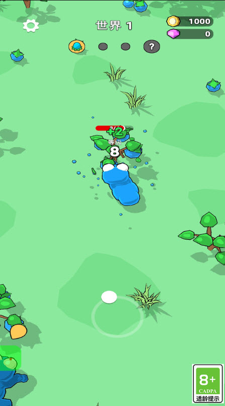 1、点击屏幕并滑动,即可操控你的初始生物在广袤地图中移动,通过持续进食弱小生物完成成长升级。