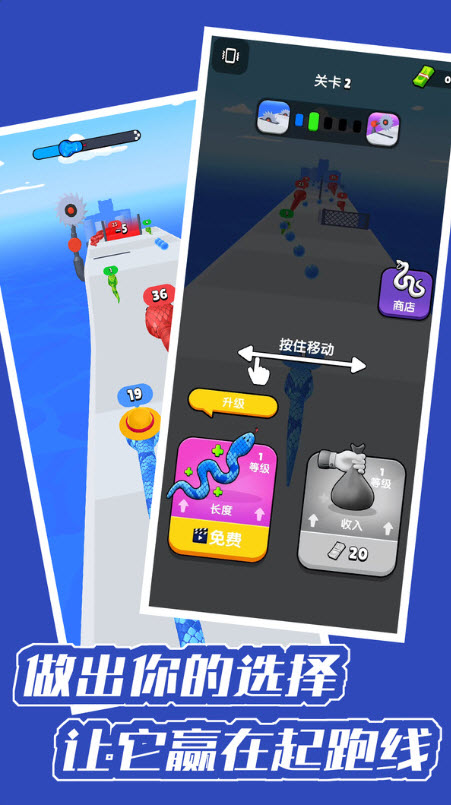 2. 善用资源强化:关卡结算获得的金币可用于小蛇属性升级,优先提升初始长度与吞噬收益,能让你在开局阶段就占据优势。
