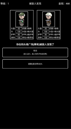 5、搜刮途中随时可能与敌人狭路相逢,你有权选择绕路规避或正面迎战。若开启战斗,过程将自动进行,一旦战斗失利,背包内所有物资都将付诸东流。
