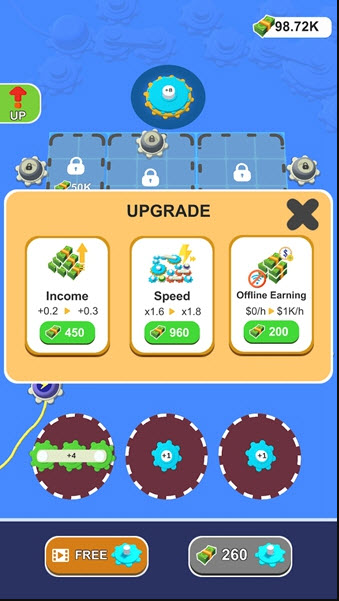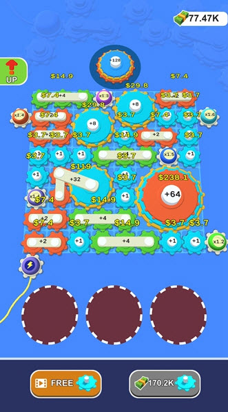 放置齿轮Idle Gear手机版下载是一款将“机械策略放置”与“动感驾驶挑战”巧妙融合的休闲益智佳作。放置齿轮中文版下载最新版核心围绕齿轮系统展开,玩家需凭借敏锐的机械思维,在网格中精准布局不同转速的齿轮,通过齿轮间的联动效应持续产出收益,进而解锁更多放置空间与高阶齿轮,构建属于自己的高效收益体系。当机械系统成型后,玩家将切换至驾驶视角,操控载有核心齿轮的车辆突破关卡——躲避障碍、巧用道具,在策略布局与敏捷操作的双重体验中收获乐趣,无论是追求放松的休闲玩家,还是喜爱脑力挑战的核心玩家,都能在此找到专属乐趣。