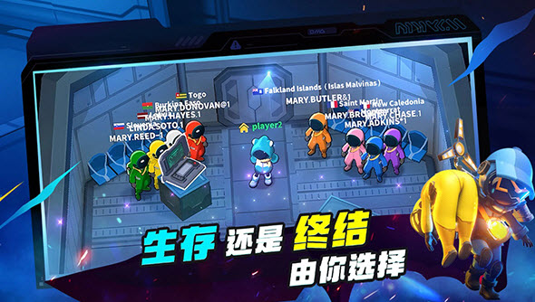 地图更是横跨星际,从太空飞船到深海基地,从火星站到空中飞艇,每一处都有独特的场景设计。还能开情侣模式撒糖,或者组队打5v5团队战,娱乐性直接拉满。