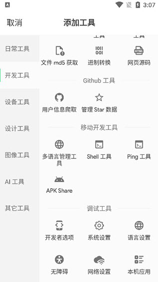 在丰富的工具列表中,挑选自己想用的功能直接添加;