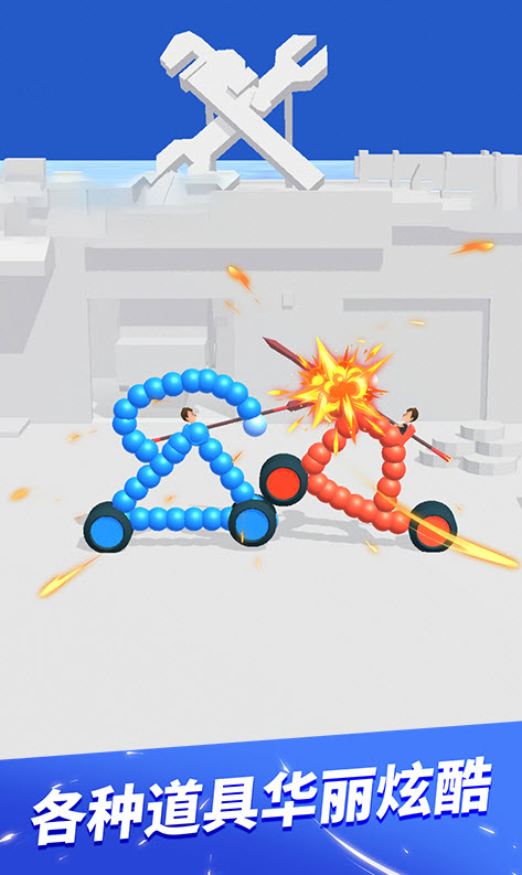 画车对决以“创意组装+实时对战”为核心玩法,打破传统休闲闯关游戏的单一模式,为玩家打造了一个兼具动手实践与策略博弈的游戏场景。游戏中无固定的战车模板限制,玩家可根据对战需求与个人创意,搭配不同类型的车身、武器、底盘等部件,DIY出极具个性化的战斗车辆。对战过程中,战车的组装方案直接决定战斗效果,无论是侧重防御的稳定型战车,还是主打突袭的攻击型战车,都能在玩家的创意组合下实现,极大考验玩家的创造力与战场应变能力。整体玩法轻量化设计,无需复杂的操作门槛,适合各年龄段玩家闲暇时光放松体验。
