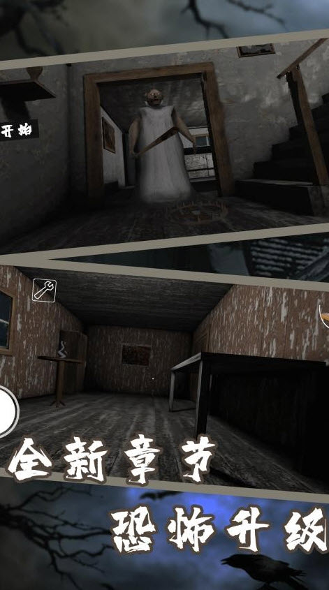 1、点击“开始游戏”即可开启逃生挑战,核心目标是躲避“老奶”的追捕,完成全关卡解谜并成功逃脱。